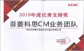 2019年12月,我司喜獲新華三集團(tuán)(簡(jiǎn)稱“新華三”)頒發(fā)的“2019年度優(yōu)秀支持獎(jiǎng)”榮譽(yù)稱號(hào)。